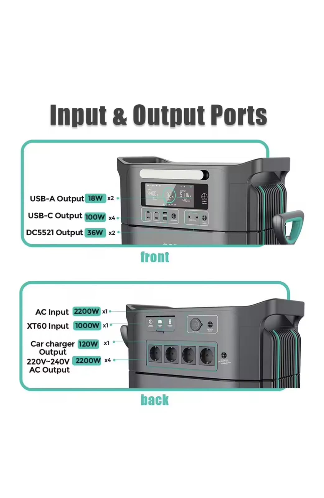 ✅ 2200W output (ook AC laden/gebruik) 2074Wh capaciteit (LFP)